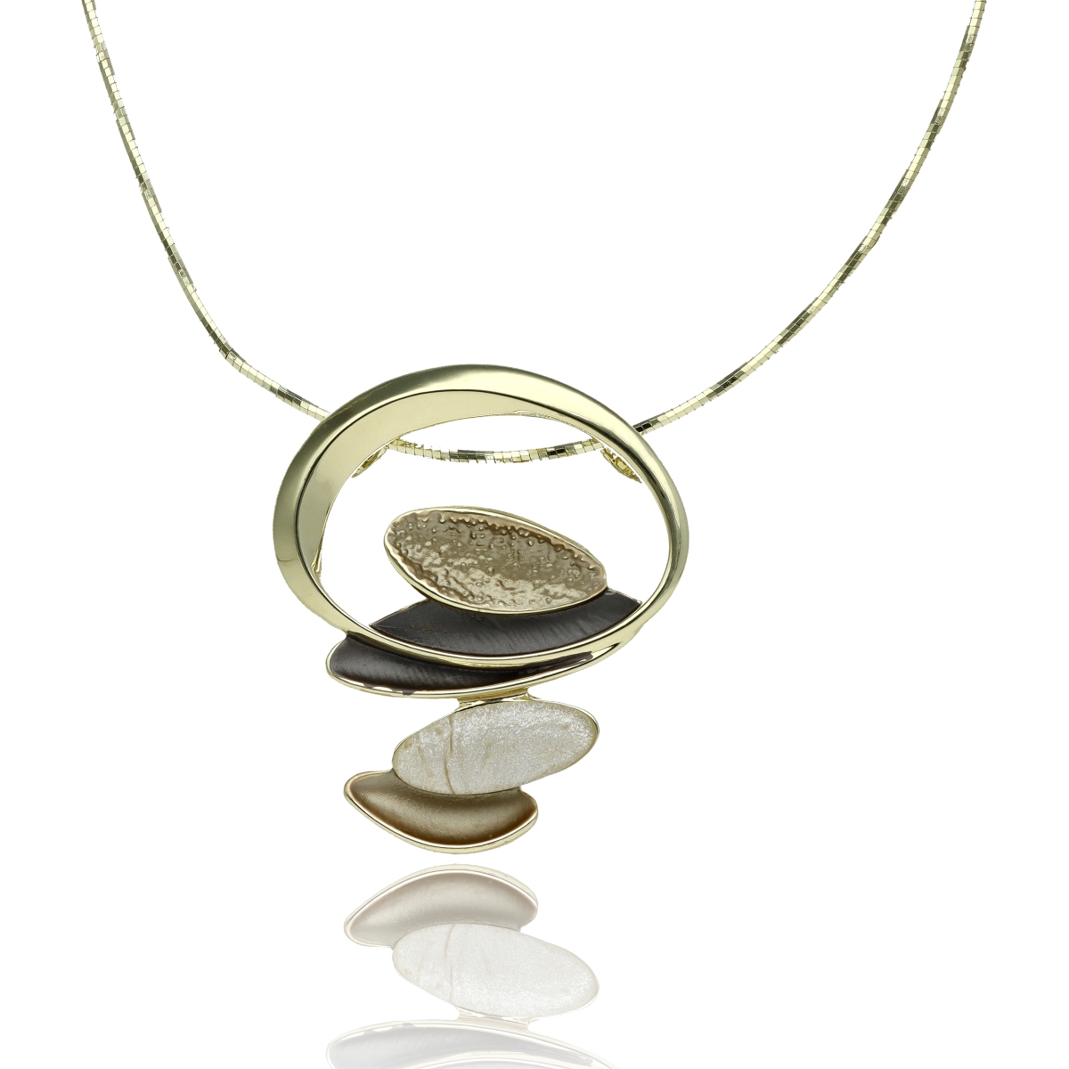 Náhrdelník je vyroben z hypoalergenního kovu, zdobený barevným smaltem a pryskyřicí pro hloubkový efekt.