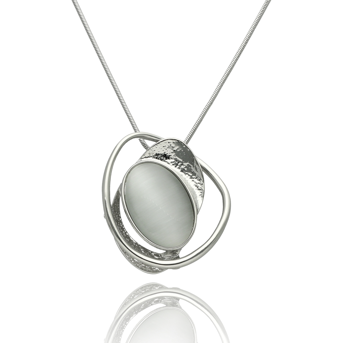Oválný přívěsek má průměr přibližně 5 cm, což z něj činí ústřední bod celého šperku. Mléčný křemen s jemným mléčným odstínem dodává náhrdelníku lehkost a harmonii.
