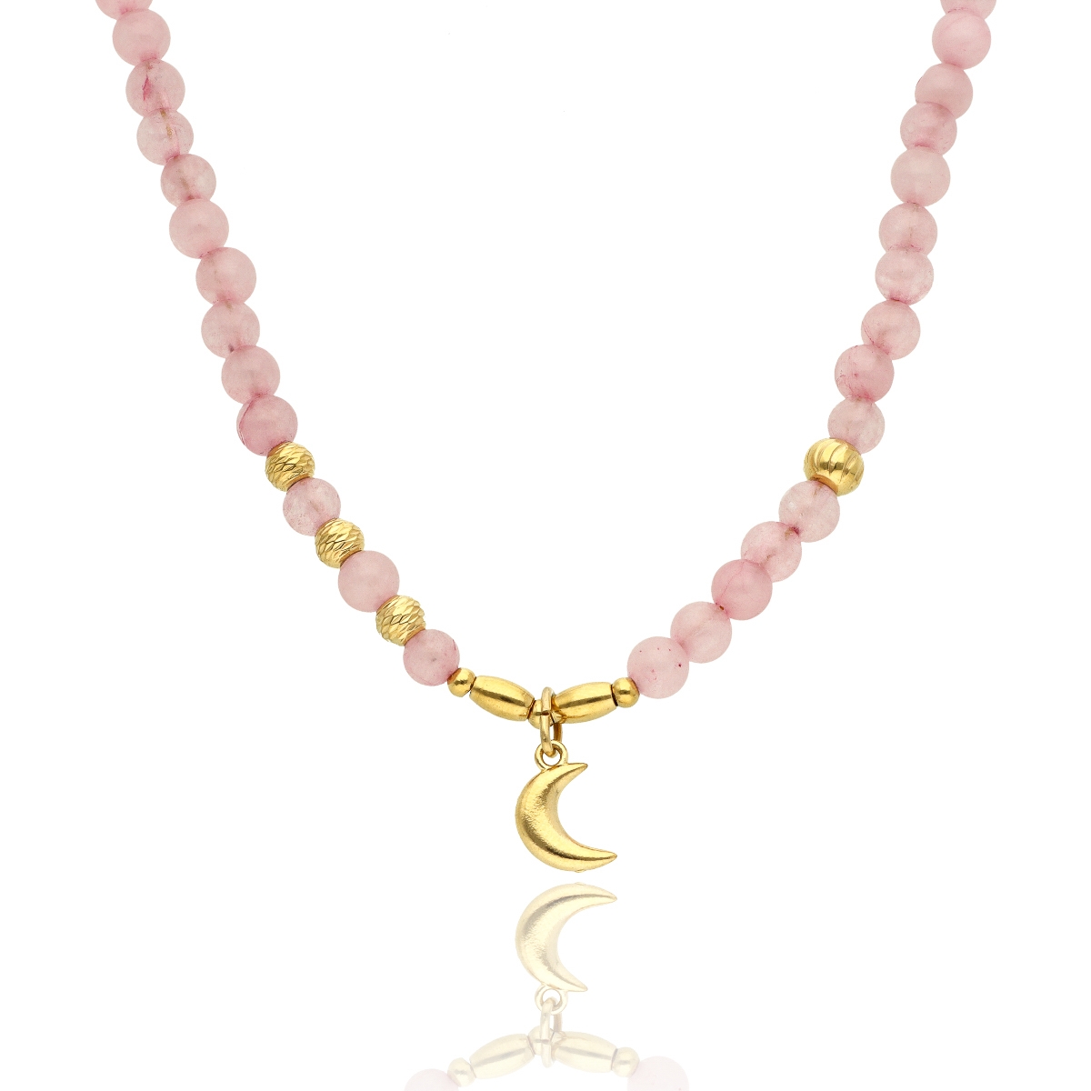 Ohromující náhrdelník vyrobený z pozlacené nerezové oceli a drobných barevných křemenných korálků.