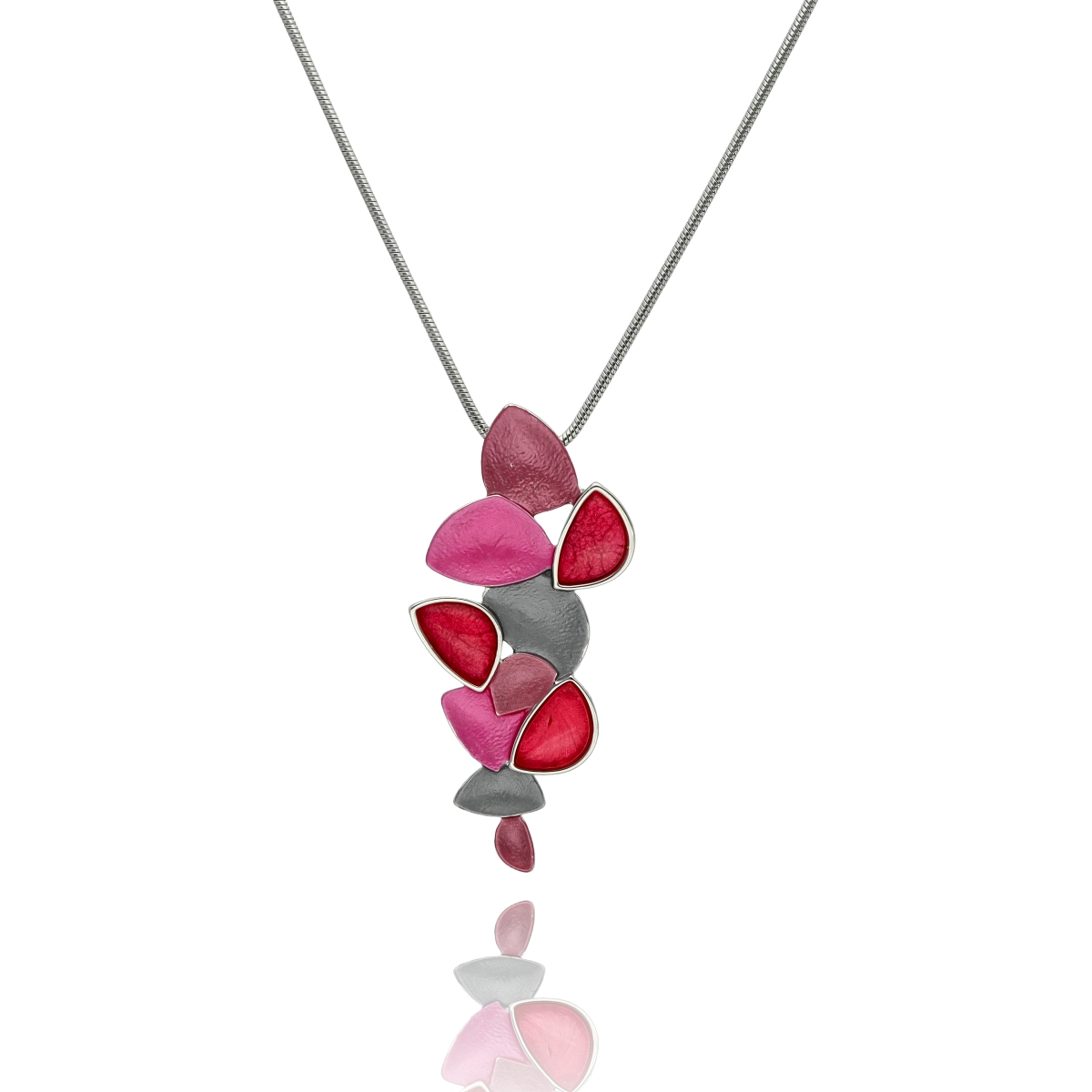 Dlouhý náhrdelník zeštíhlující postavu z antialergického kovu a barevné pryskyřice.