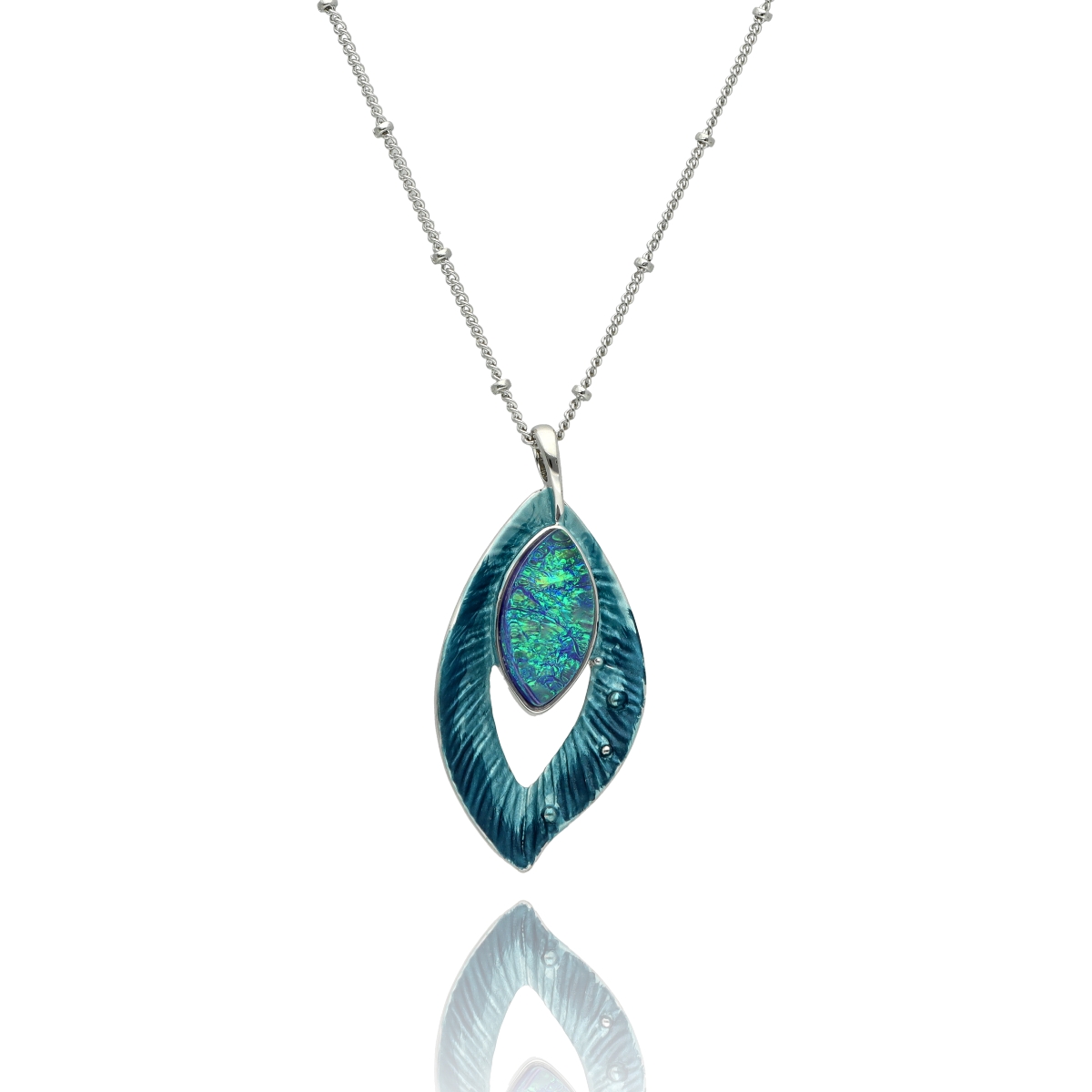Náhrdelník je vyroben z hypoalergenního kovu, barevného smaltu a pryskyřice.
