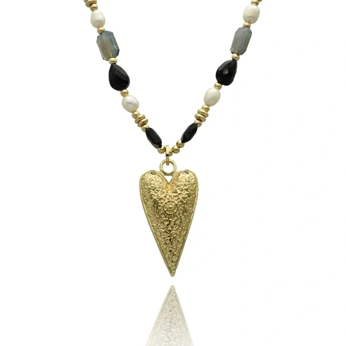 Dlouhý náhrdelník zeštíhlující postavu s přírodními kameny a sladkovodními perlami.