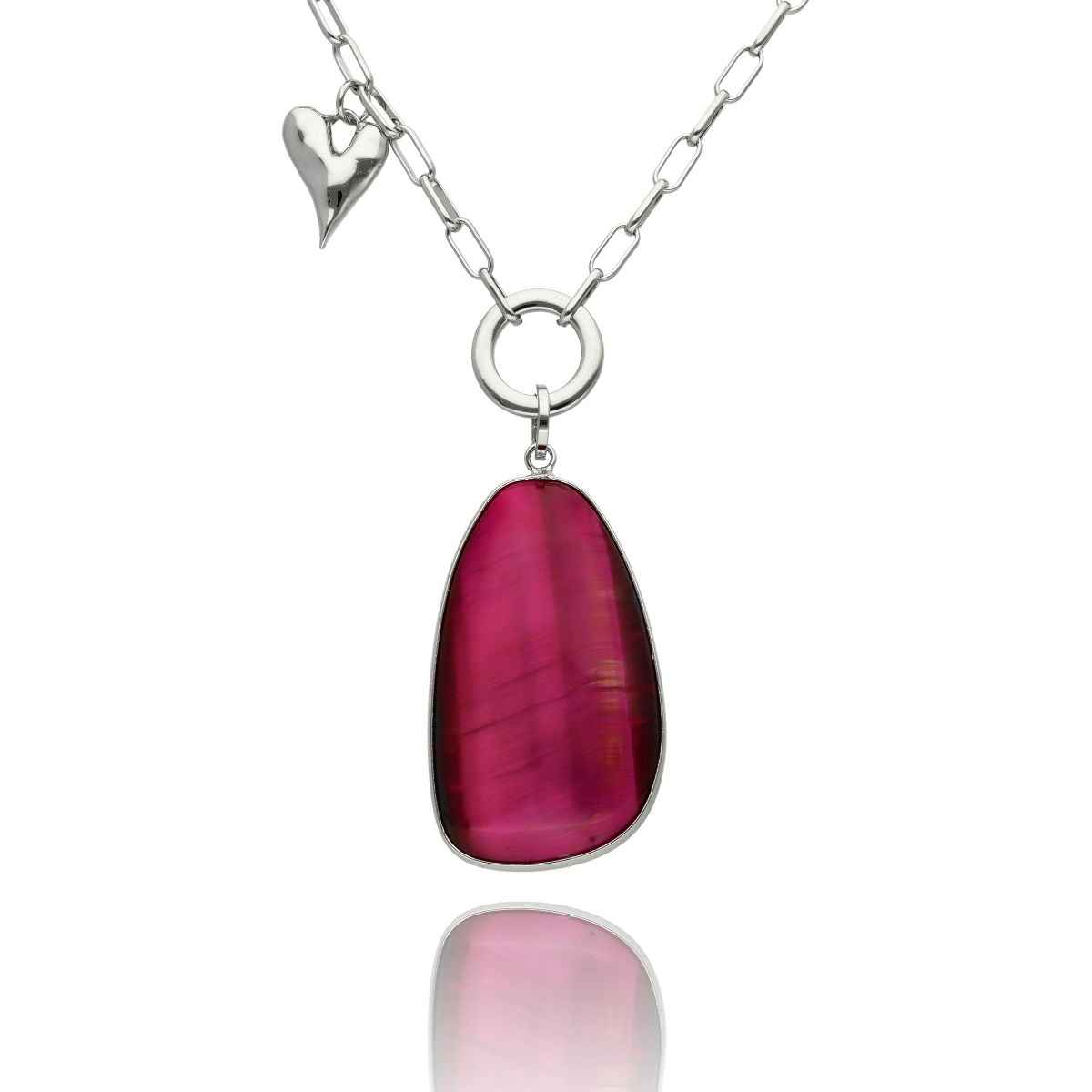 Dlouhý, zeštíhlující náhrdelník s nádherným barevným kamenem TYGŘÍ OKO (5 cm).