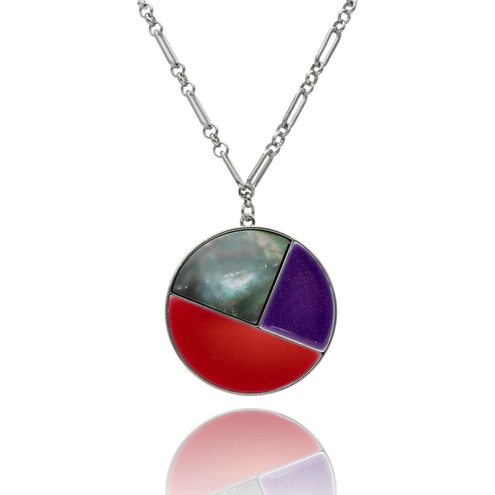 Efektní dlouhý náhrdelník z antialergického kovu, přírodní mušle a barevného smaltu.