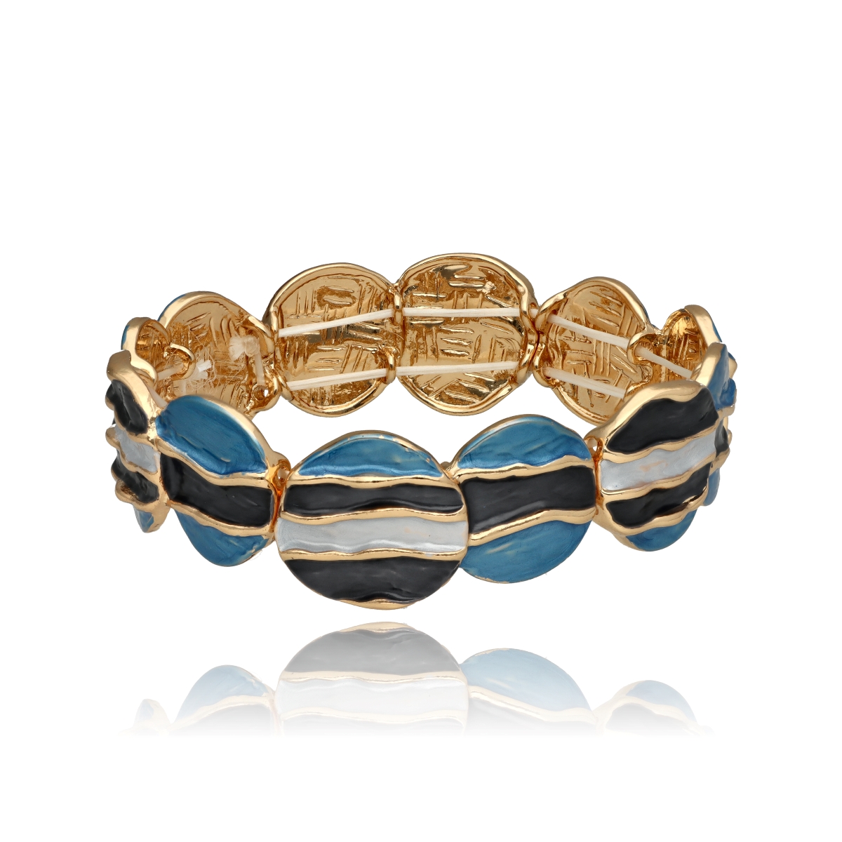 Tento náramek je vyroben z hypoalergenního kovu a zdoben smaltovanými prvky.