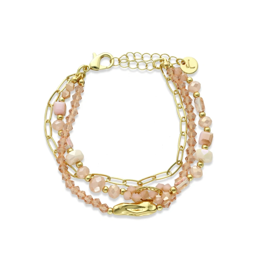 3řadý náramek s humrovým zapínáním, vyrobený z antialergického kovu a fasetovaného skla.