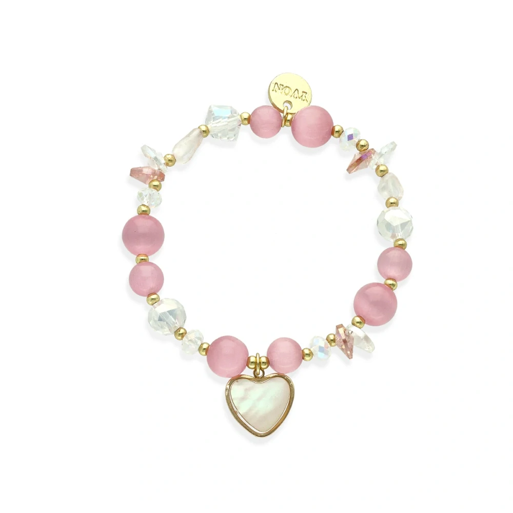 Šperk z mosazi, přírodních kamenů (růžový křemen) a křišťálu.