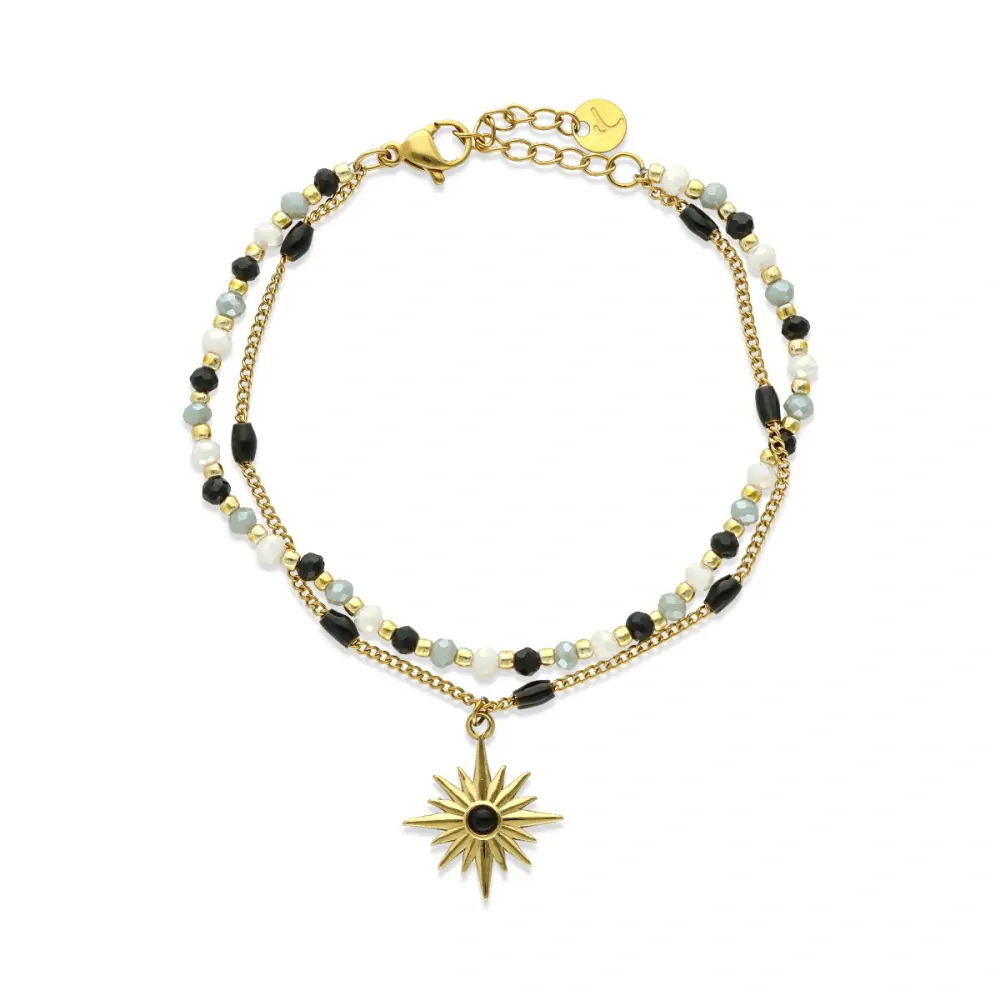 Exkluzivní, pozlacený (technologie PVD!) antialergický náramek, vyrobený z nerezové oceli 316L a broušeného skla.