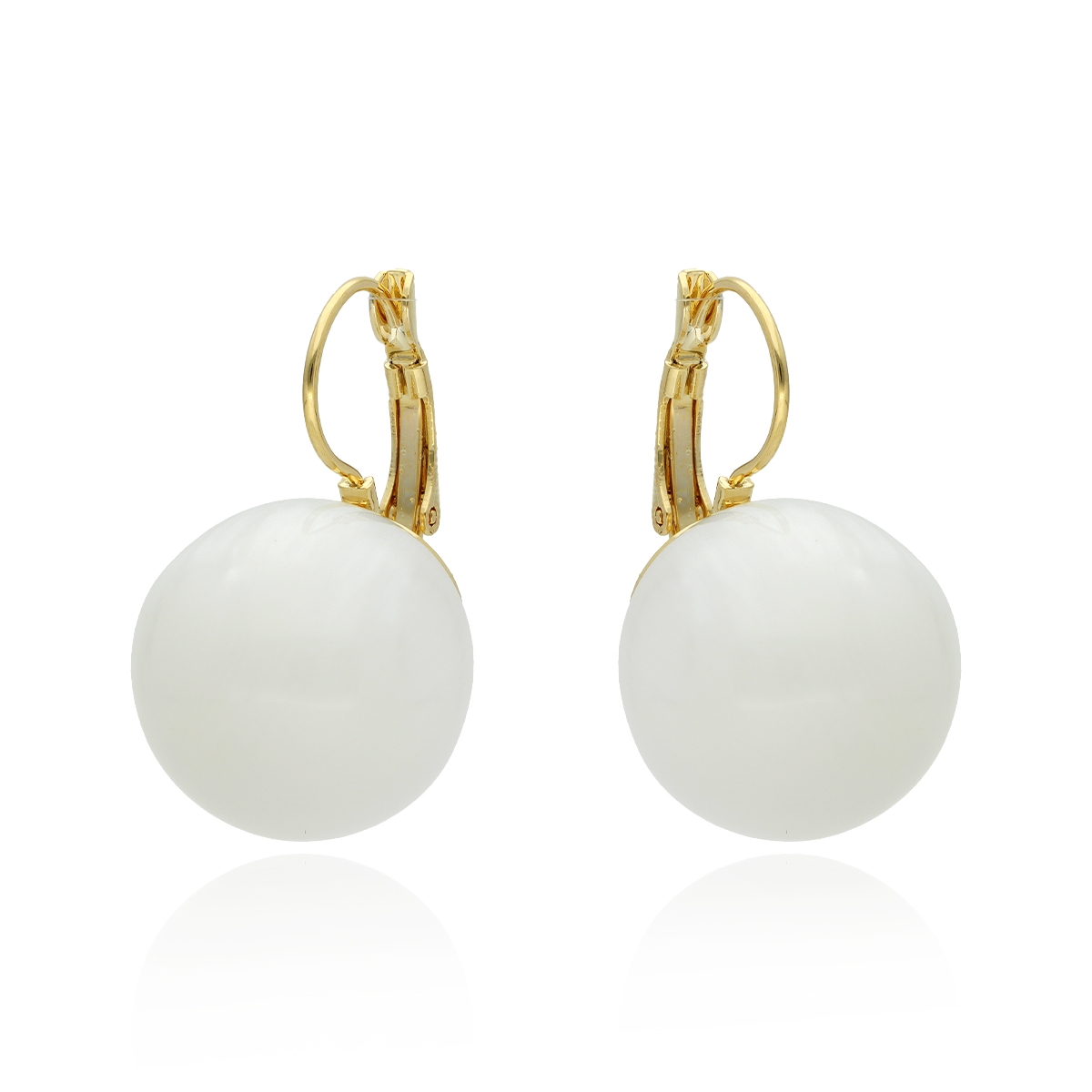 Náušnice s velkými perlami, vyrobené z vysoce kvalitních materiálů: pozlacená mosaz (antialergenní kov) a světlá pryskyřičná perla.