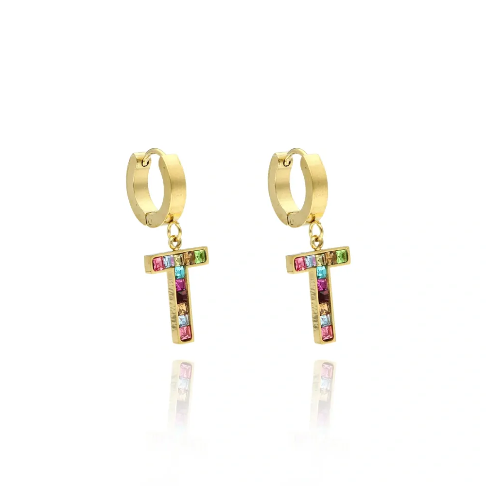 Jedinečné náušnice s duhovými zirkony vyrobené z nerezové oceli.