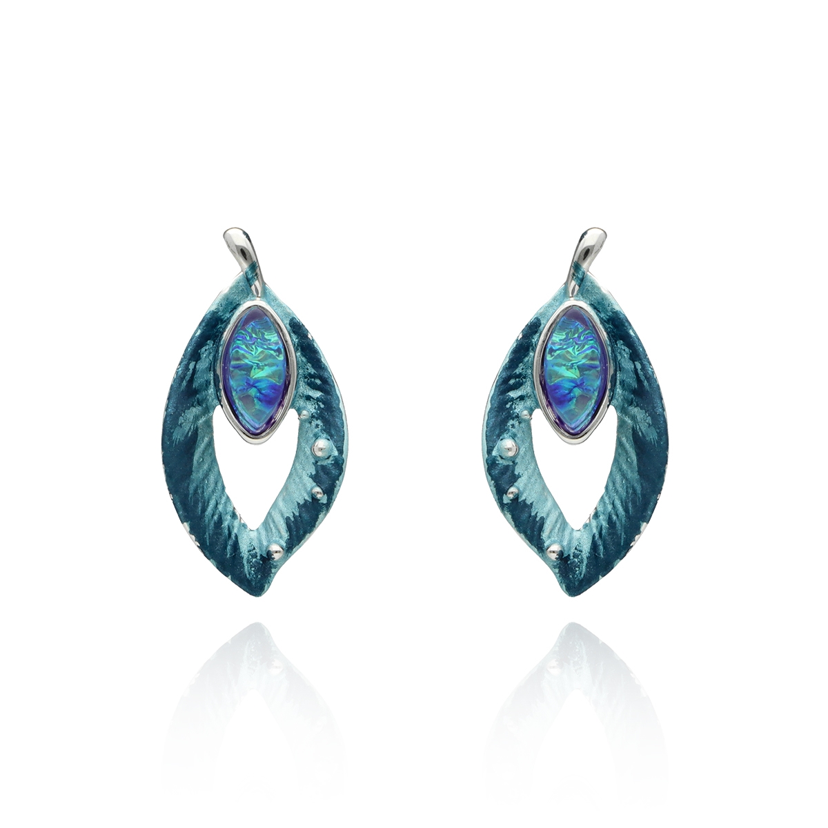 Náušnice vyrobené z hypoalergenního kovu, barevného smaltu a pryskyřice.