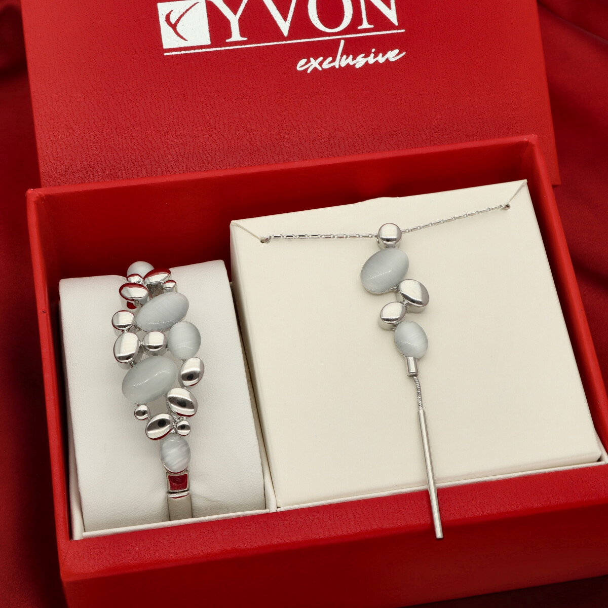 Sada šperků Lumina je elegantní sada z náhrdelníku a náramku vyrobeného z křemene a antialergenní kovové slitiny.