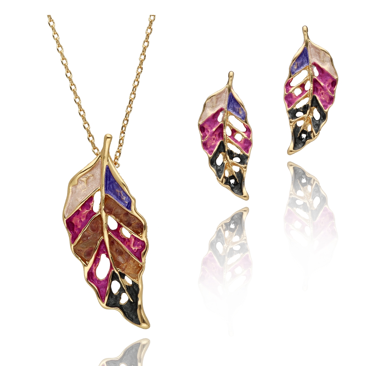 Okouzlující sada (krátký náhrdelník a náušnice) ručně smaltovaných uměleckých šperků s OMBRE efektem.