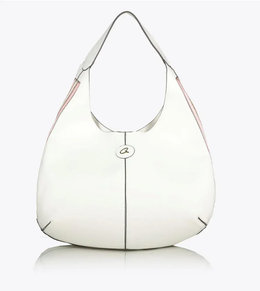 Taška přes rameno vyrobená z kvalitní umělé kůže. Má zapínání na patent a vnitřní pouzdro na zip. Na přední straně zdobená iniciálami "a".